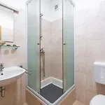 Koupelna má vanu a sprchu, zatímco pokoj má TV s plochou obrazovkou se satelitními kanály a ovládání klimatizace.